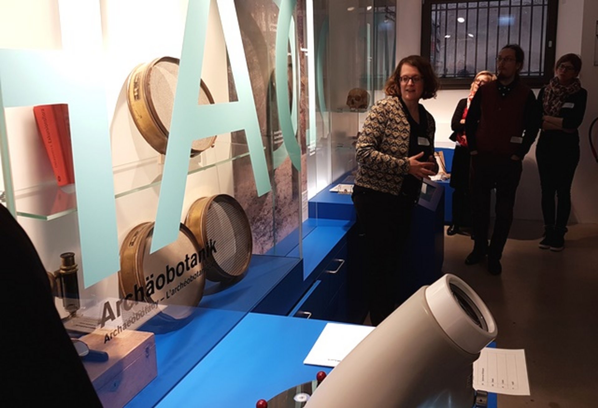 Silke Höllmüller, Museumspädagogin im Stadtmuseum in der Tonofenfabrik, führte die Grup-pe schließlich durch das Haus: Im Untergeschoss befindet sich die Archäologische Ausstel-lung, zu der ein Archäo-Lab gehört: hier finden Besucher*innen spannende digitale Mitmach-stationen, ein Wentz-Scope und verschiedene Vitrinen zu archäologischen Teildisziplinen. Die Ausstellung selbst widmet sich den drei Themen „Römeranlage“, mittelalterliche Funde aus „Lahr-Burgheim“ und zur „Hohengeroldseck“.